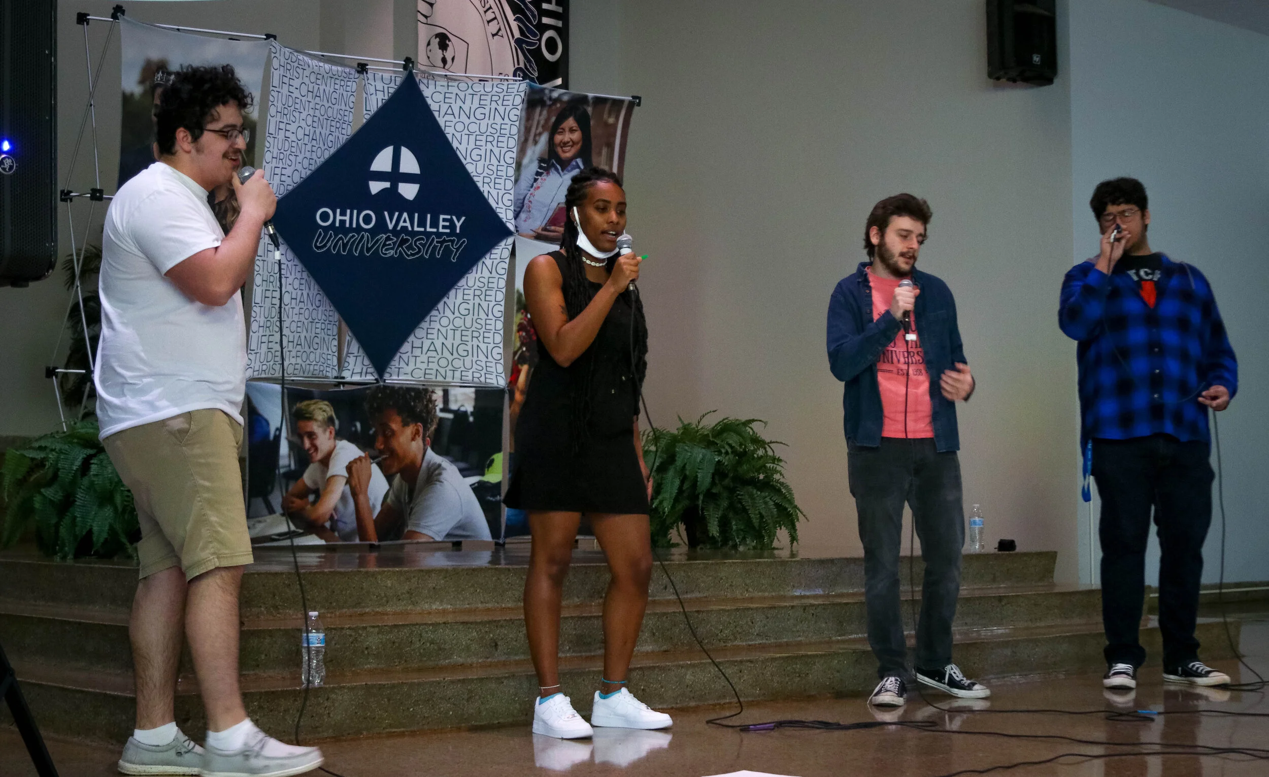 Express, OVU's contemporary Christian ensemble, enjoys a vast repertoire of worship music performed in their a cappella style to their unique musical arrangements. They travel extensively during the summer and throughout the academic year performing over 200 shows at venues such as church events, youth rallies, camps, youth retreats, banquets, and schools.